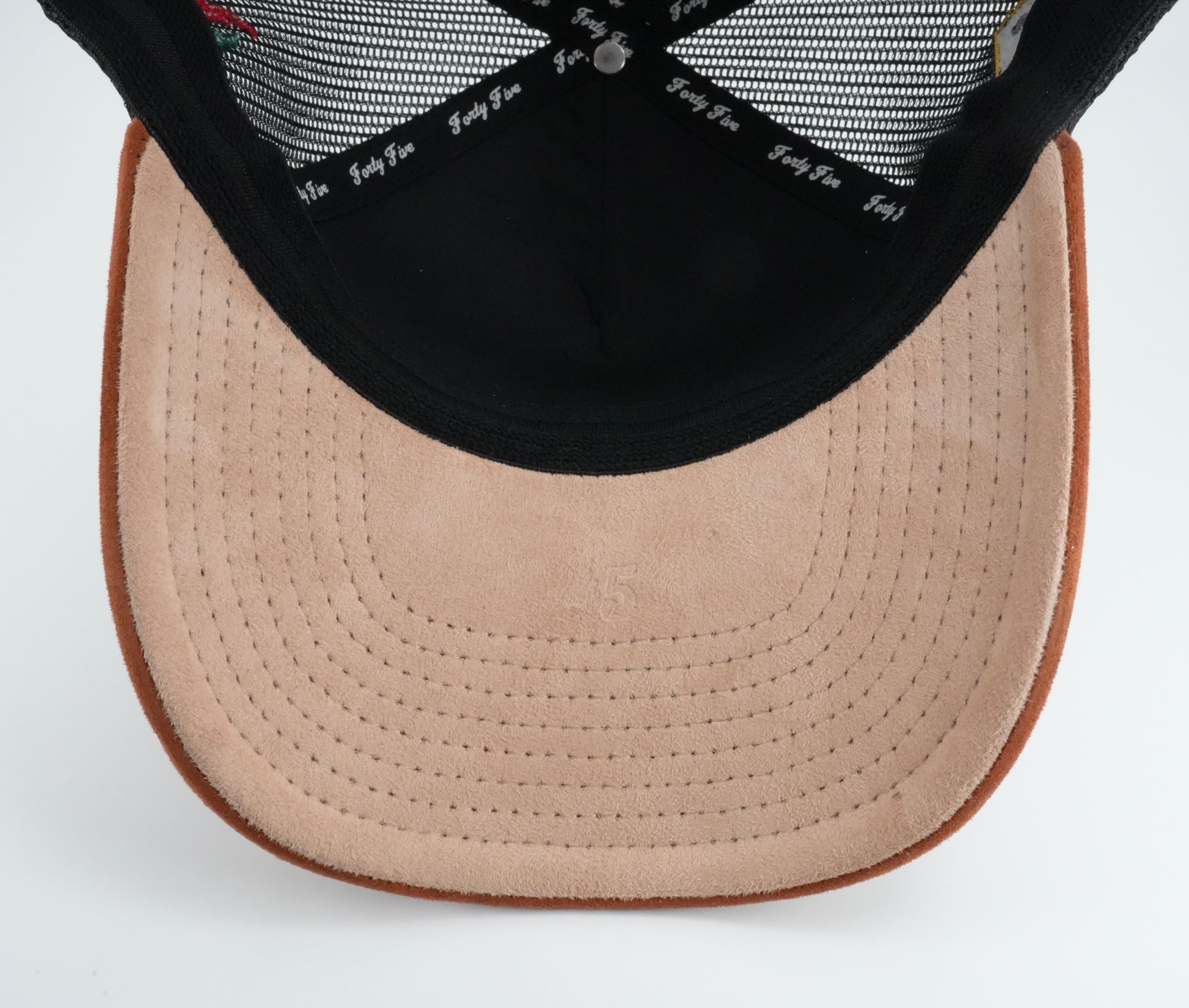 45 Rust Cursive Trucker Cap Black-Rust