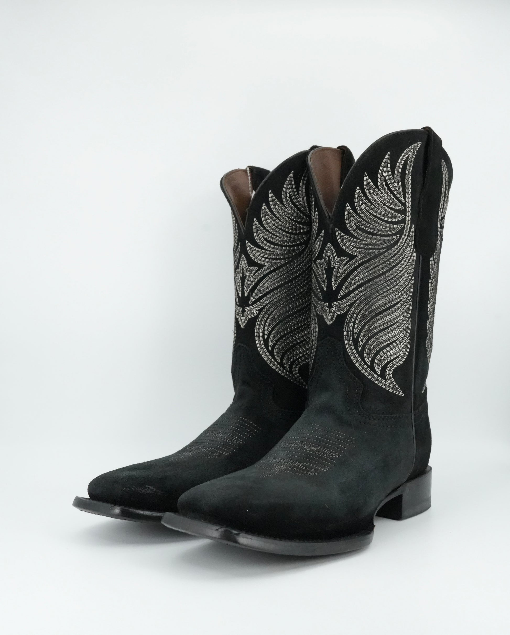 Circle G Men’s Embroidery Nobuck Black Wide Square Toe Boot