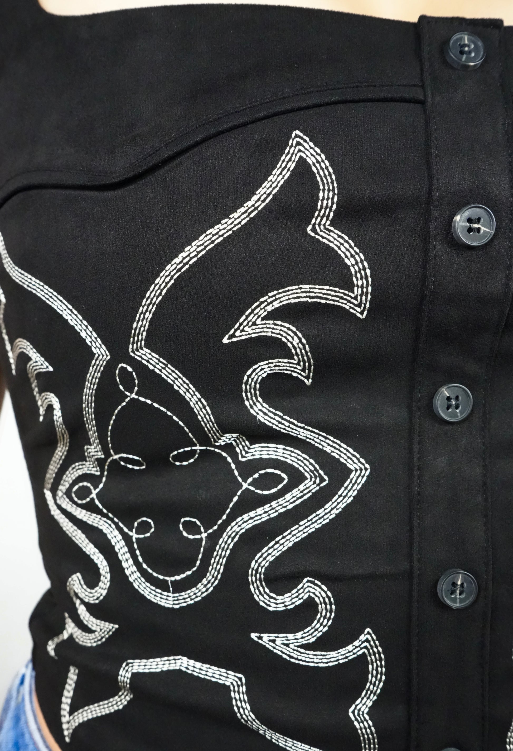 Women's Jessie Embroidered Suede Corset Crop Top - Black