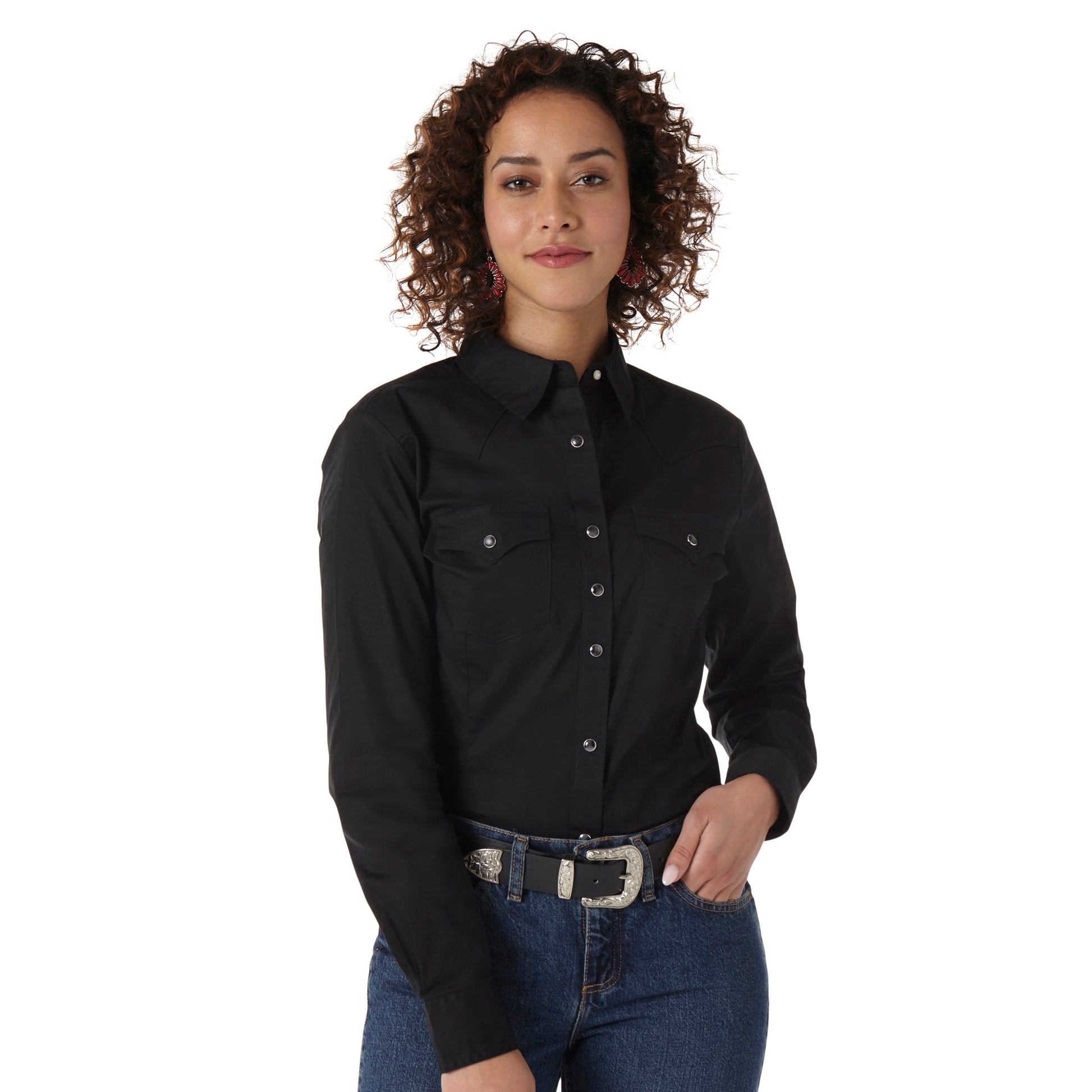 Wrangler Western Long Sleeve Solid Top - Black