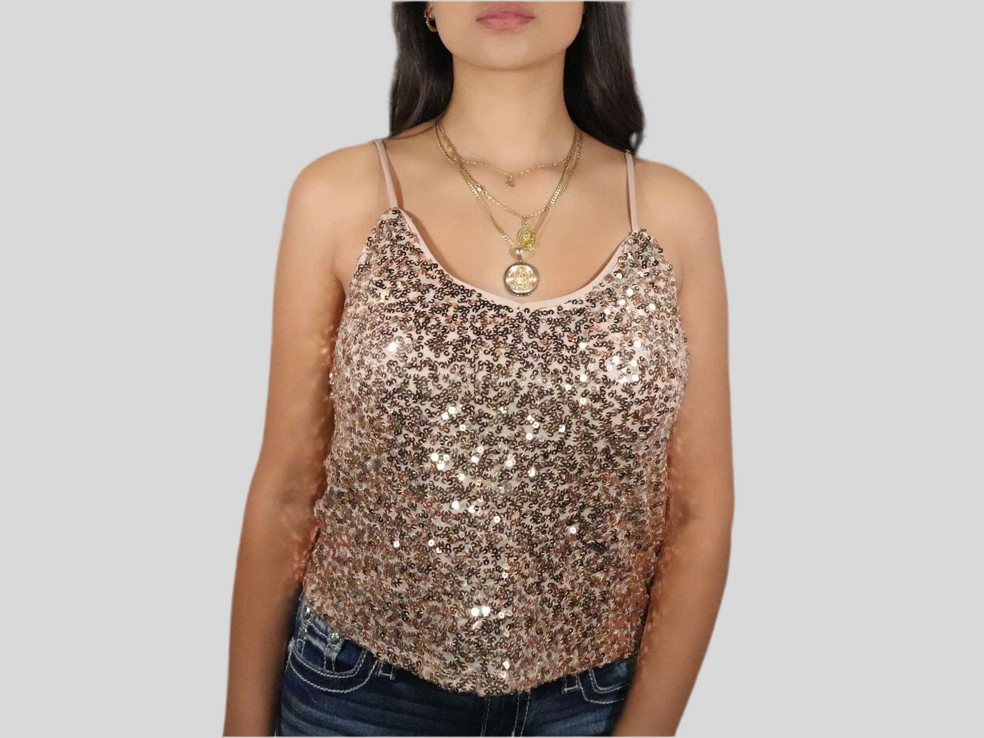 Blashe Women's Sequin Tank Top Knit Champagne