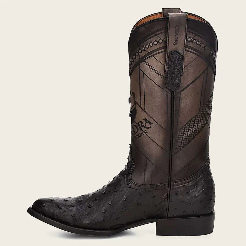Cuadra Men's Black Genuine Ostrich Leather Round Toe Boot