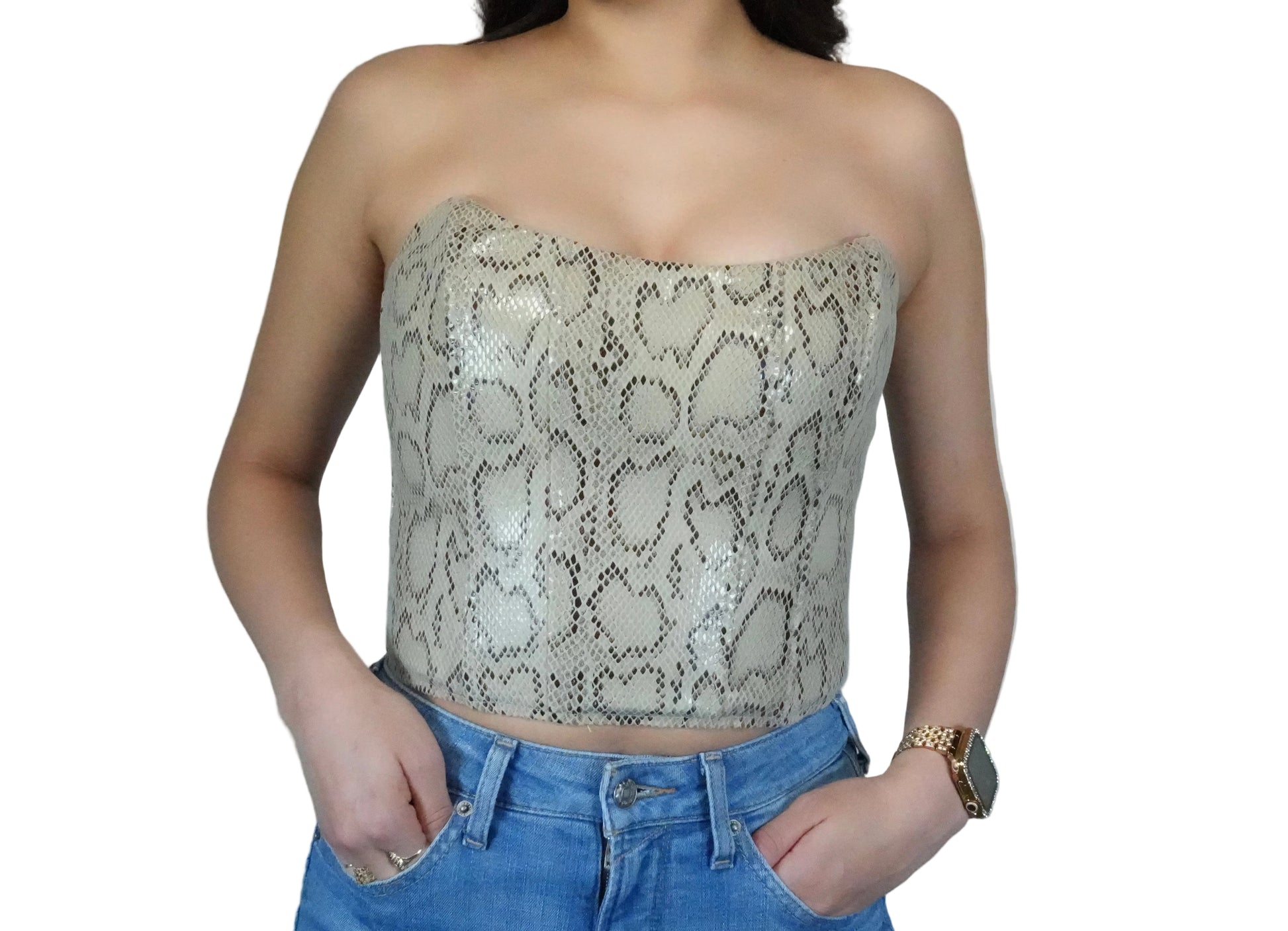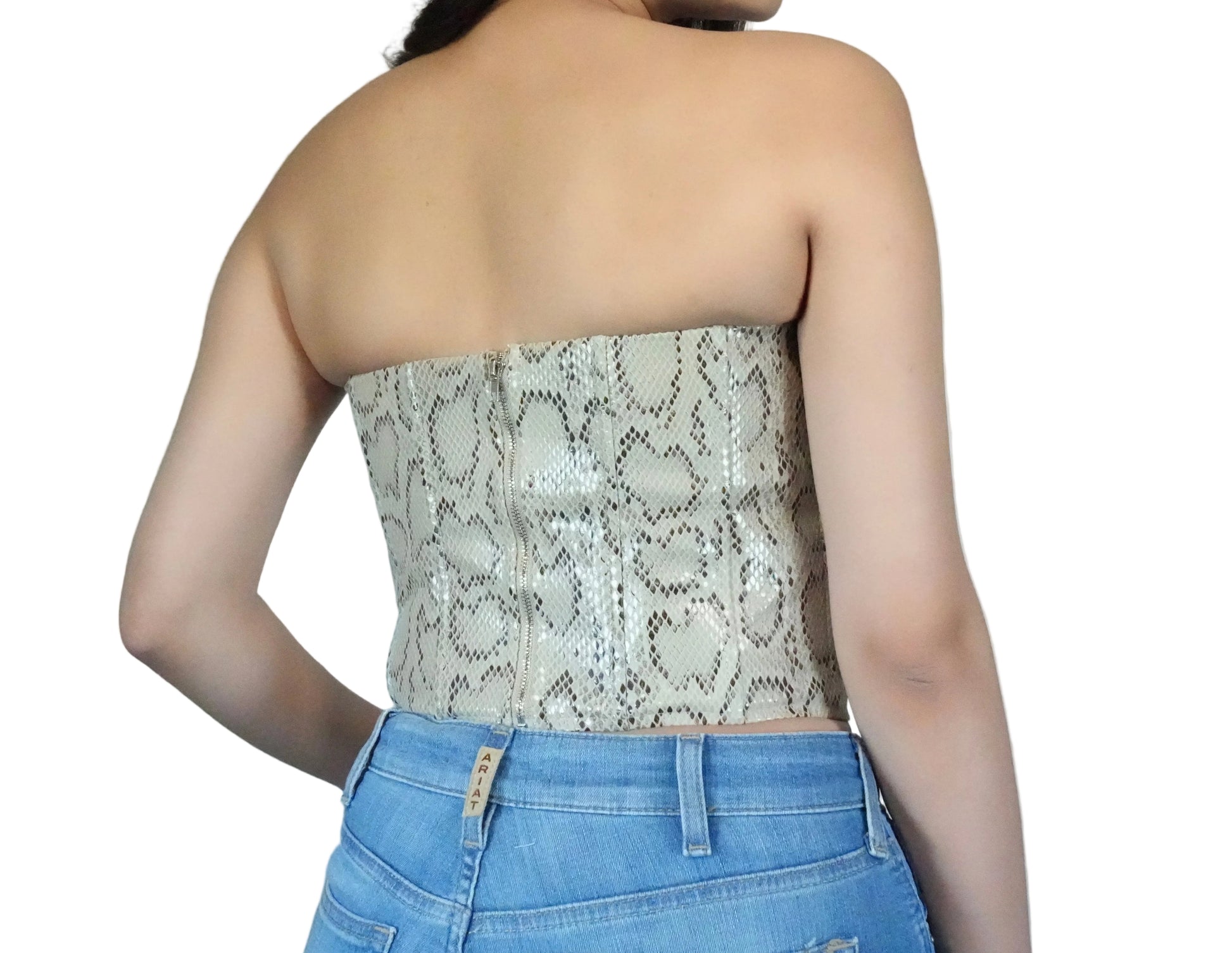Women's Boned Lined Zipper Corset Top - Snake Print